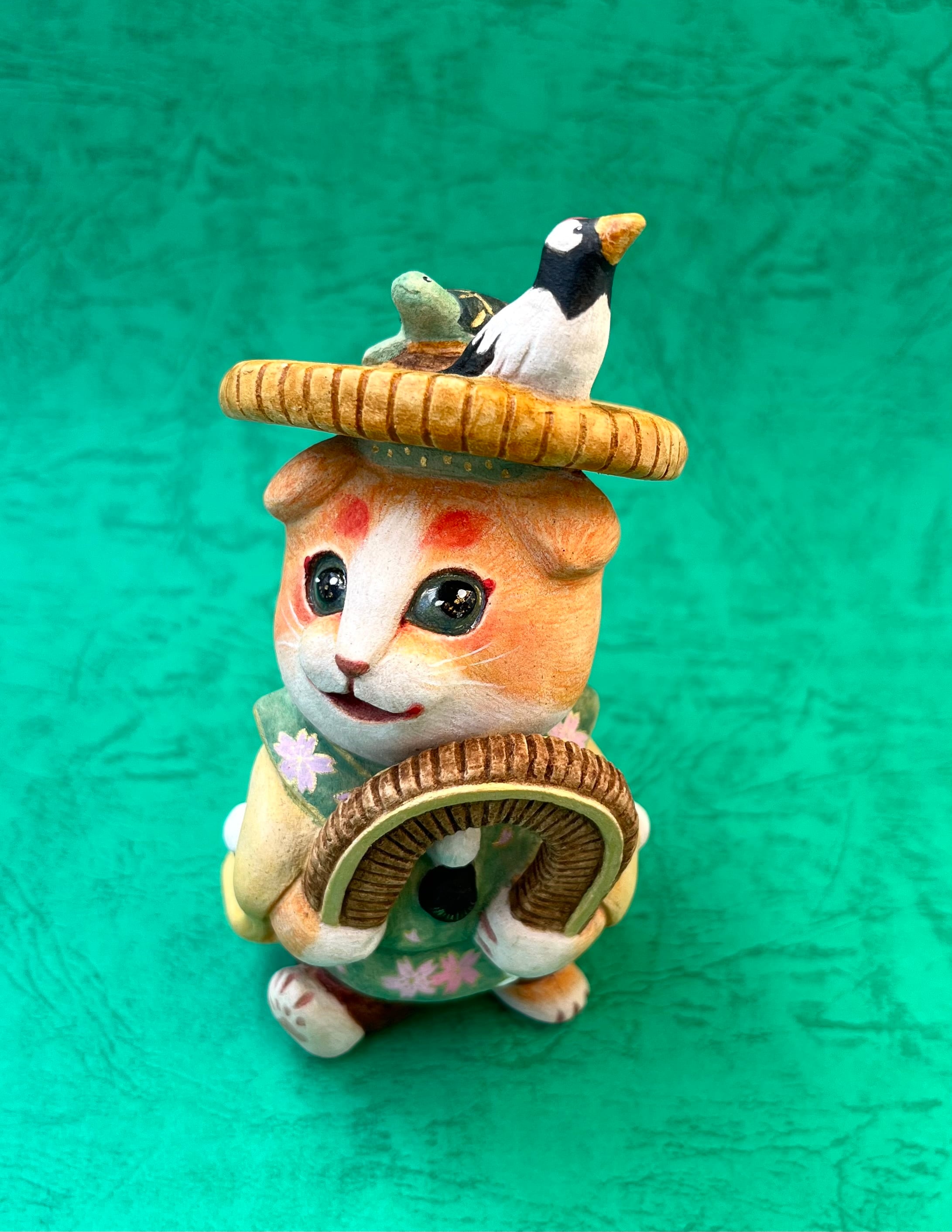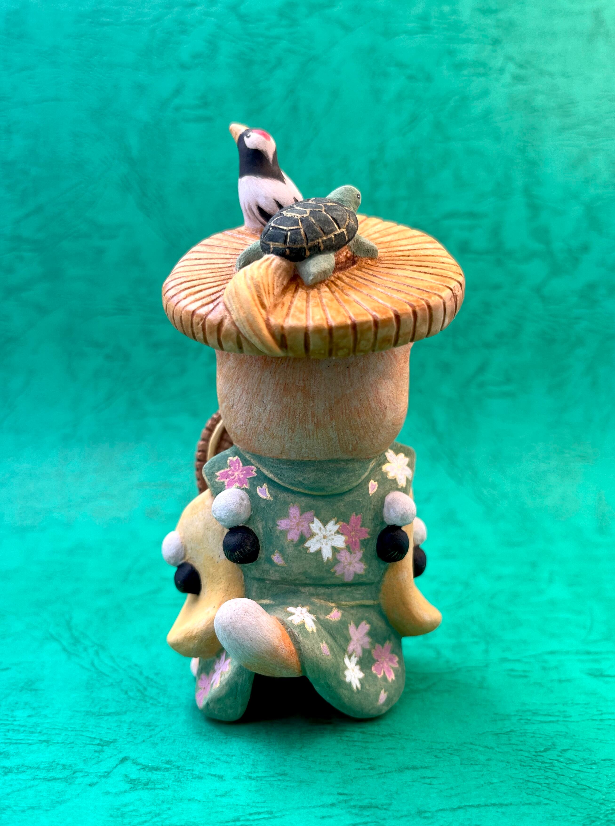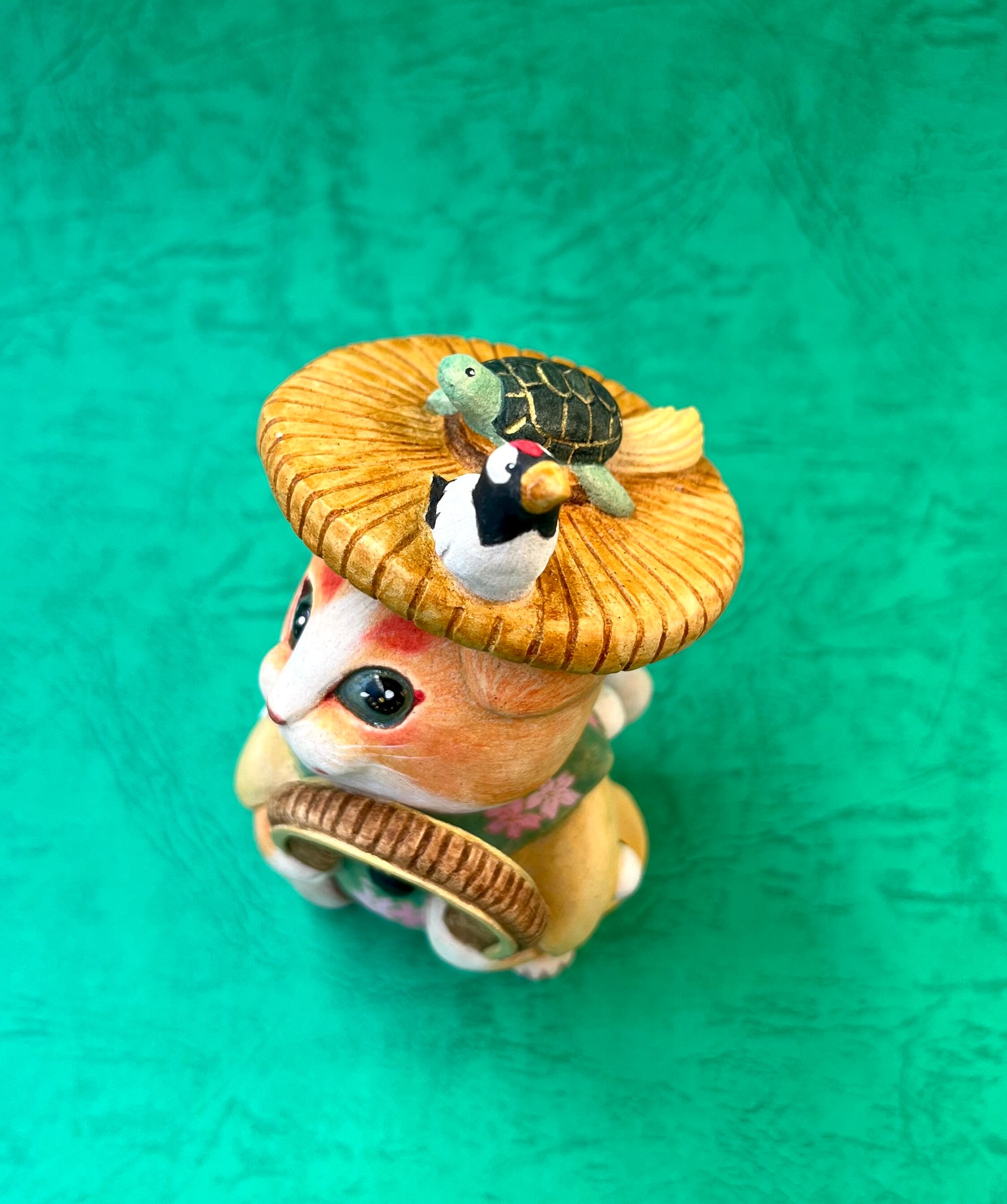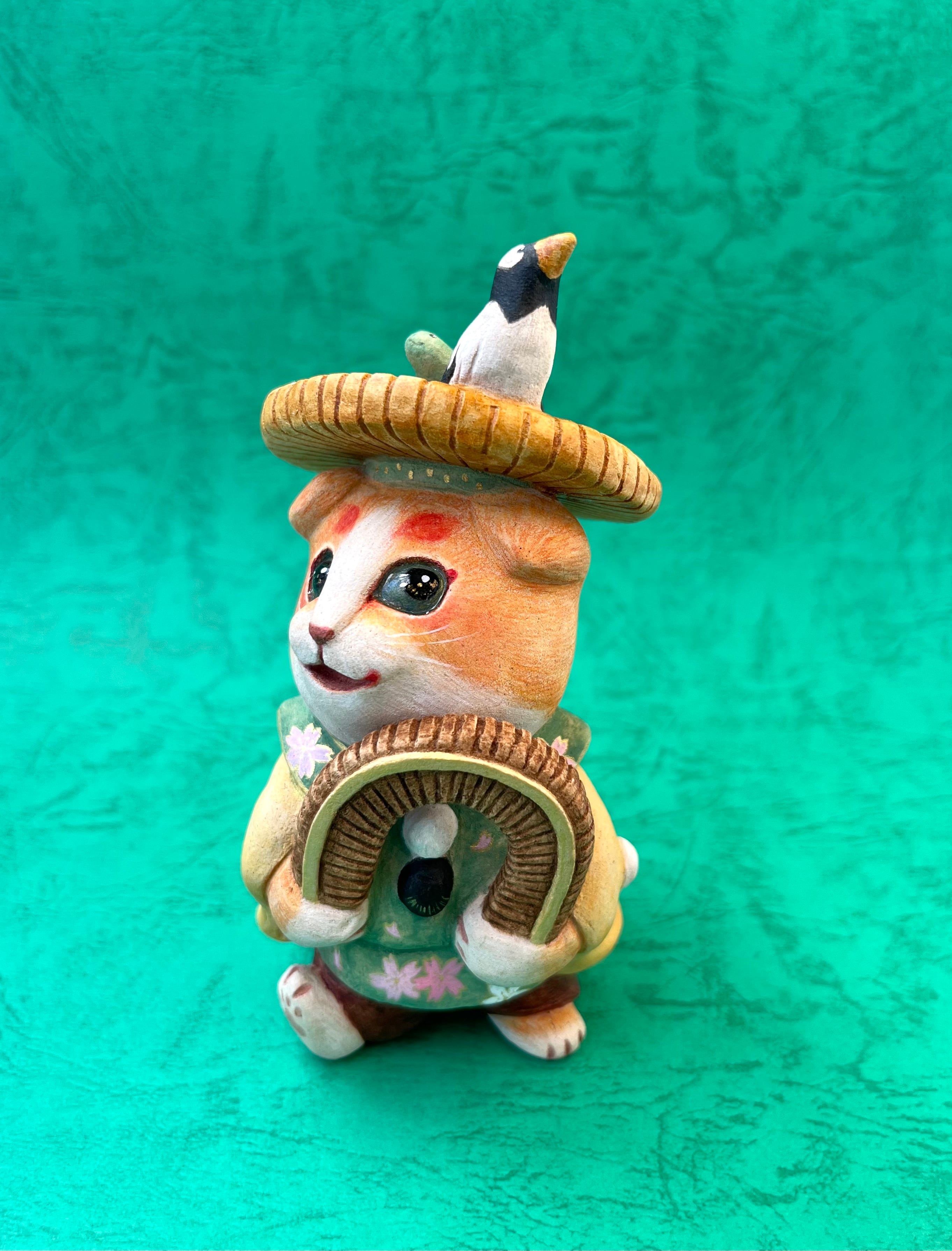 田植えの作業がはかどるように囃す音楽「田楽」を演じる僧形の芸人、「田楽法師」をモチーフにしました。「びんささら」という面白い楽器を使います。