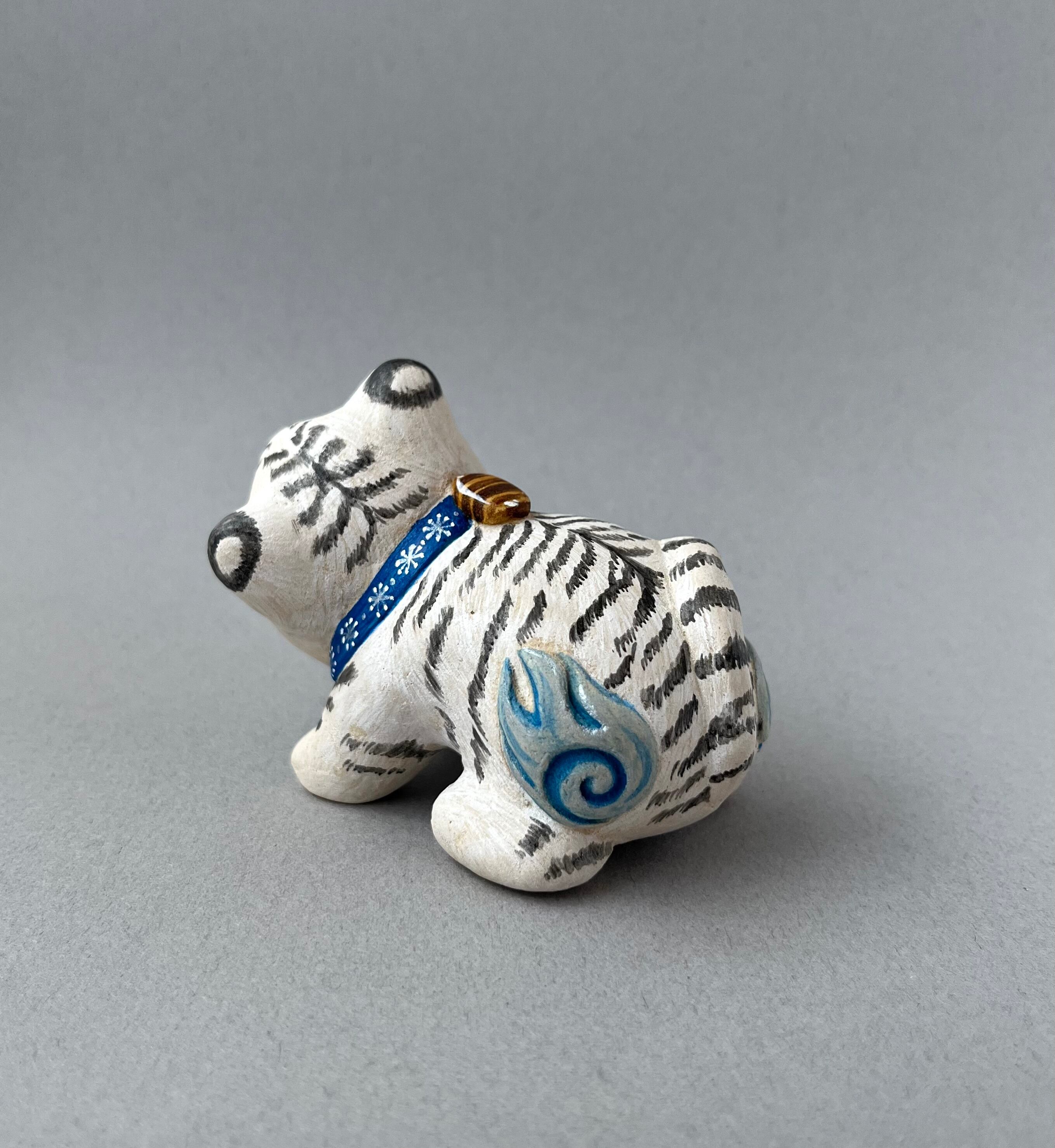 日本最古の神社とも言われる幣立神宮に奉納されている五色人の面というものがあります。かつて世界に存在していた5種類の人種を表しているとされていて、その中の白人をモチーフにした白猫です。