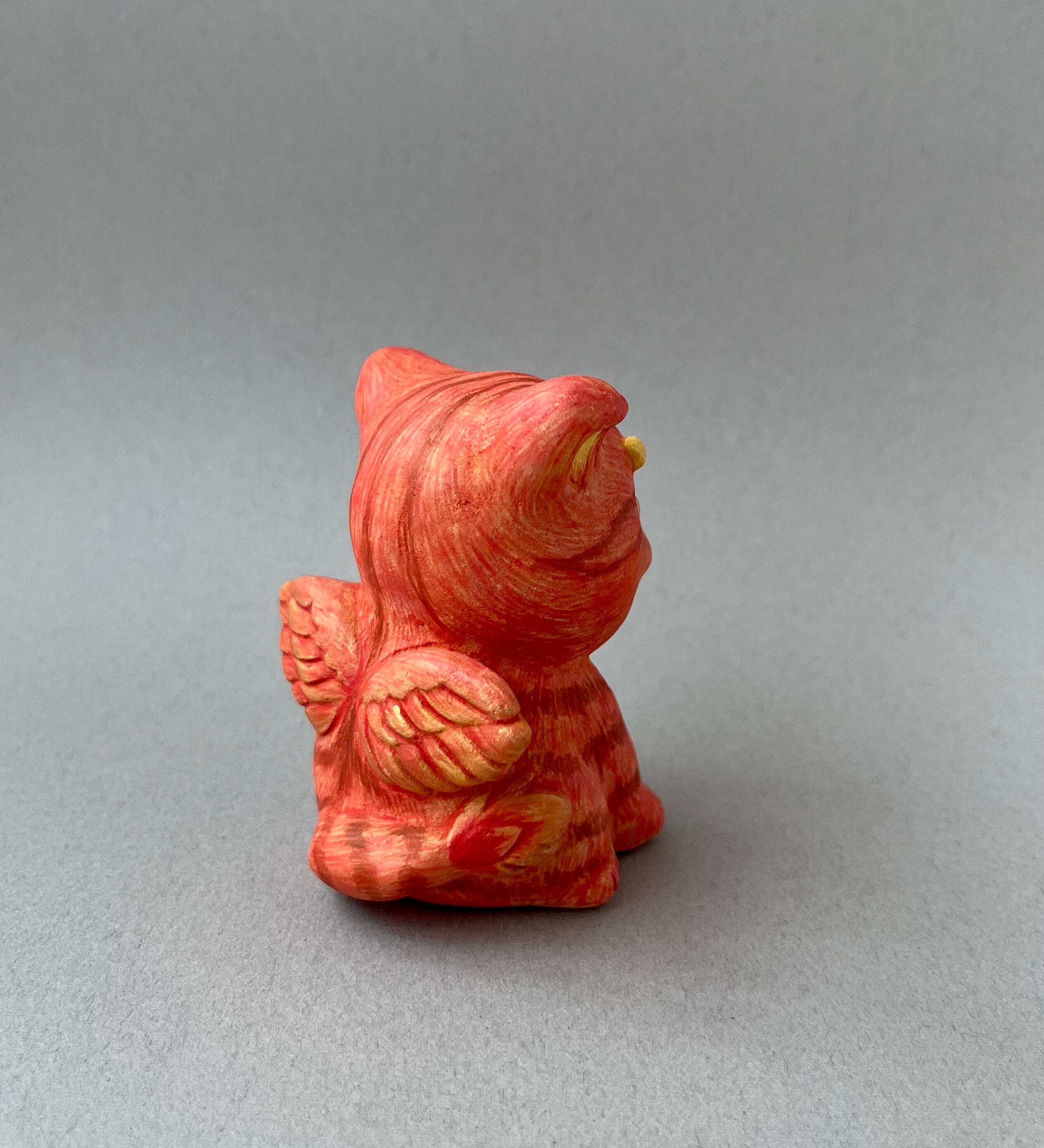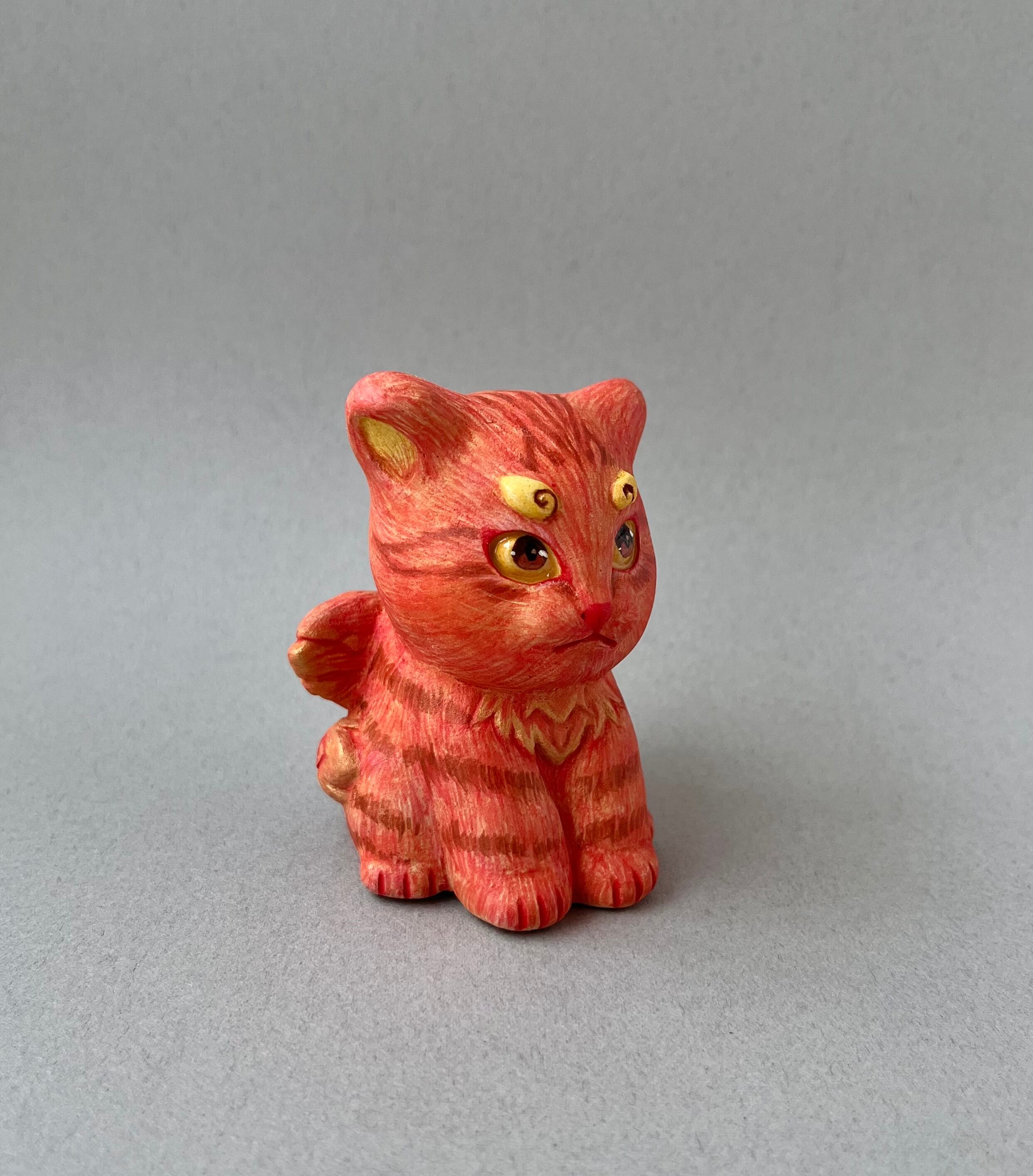 日本最古の神社とも言われる幣立神宮に奉納されている五色人の面というものがあります。かつて世界に存在していた5種類の人種を表しているとされていて、その中の赤人をモチーフにした赤猫です。