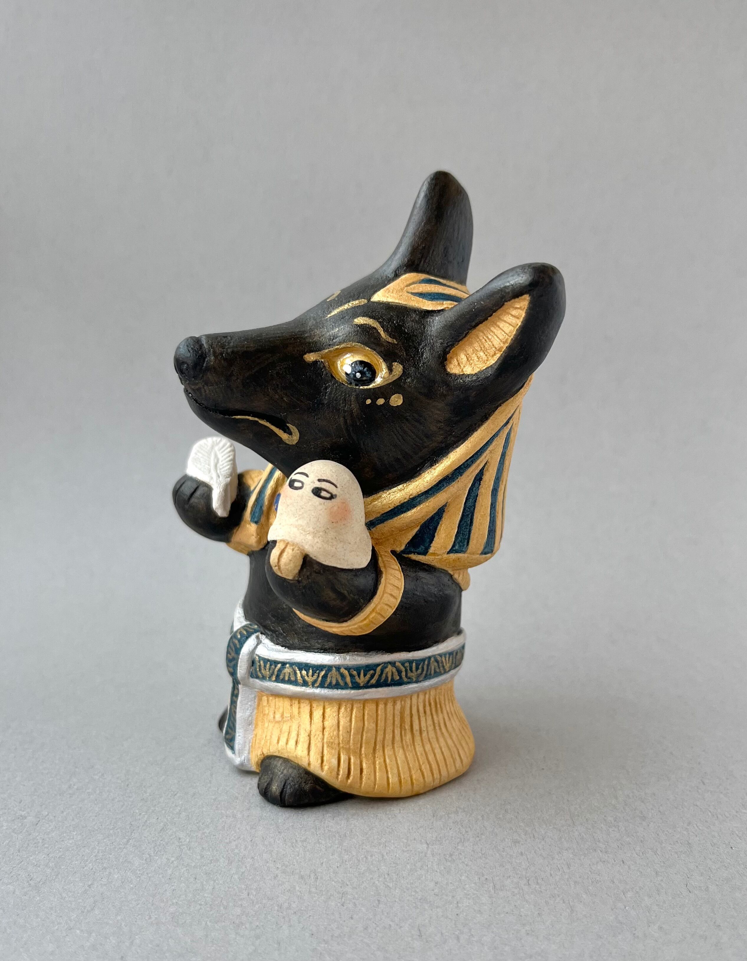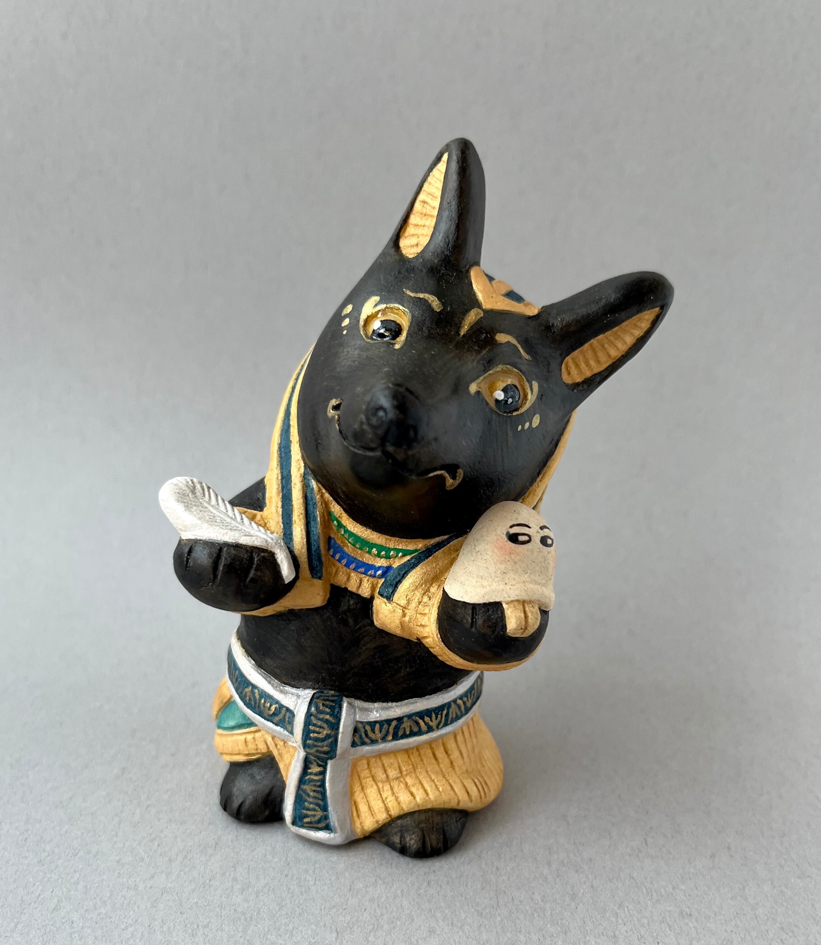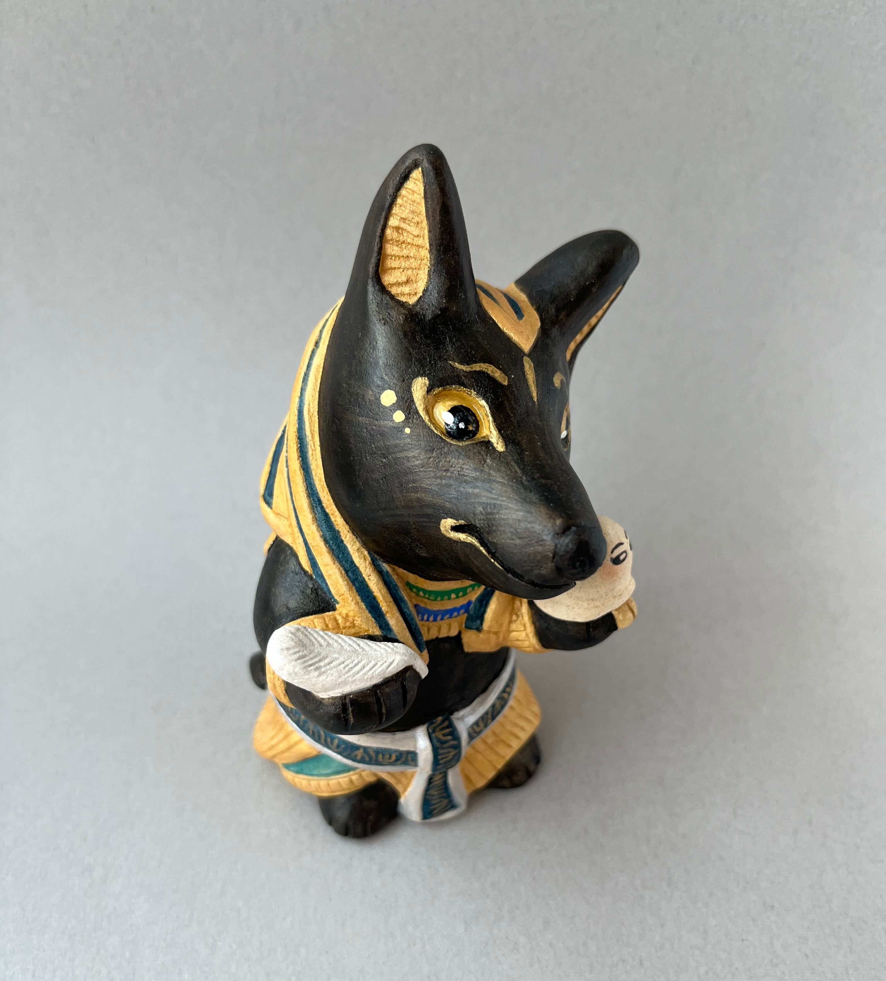 死者の罪を天秤で量ると言われていることから、羽とエジプトの謎の神メジェド様を量って困惑している姿にしてみました。