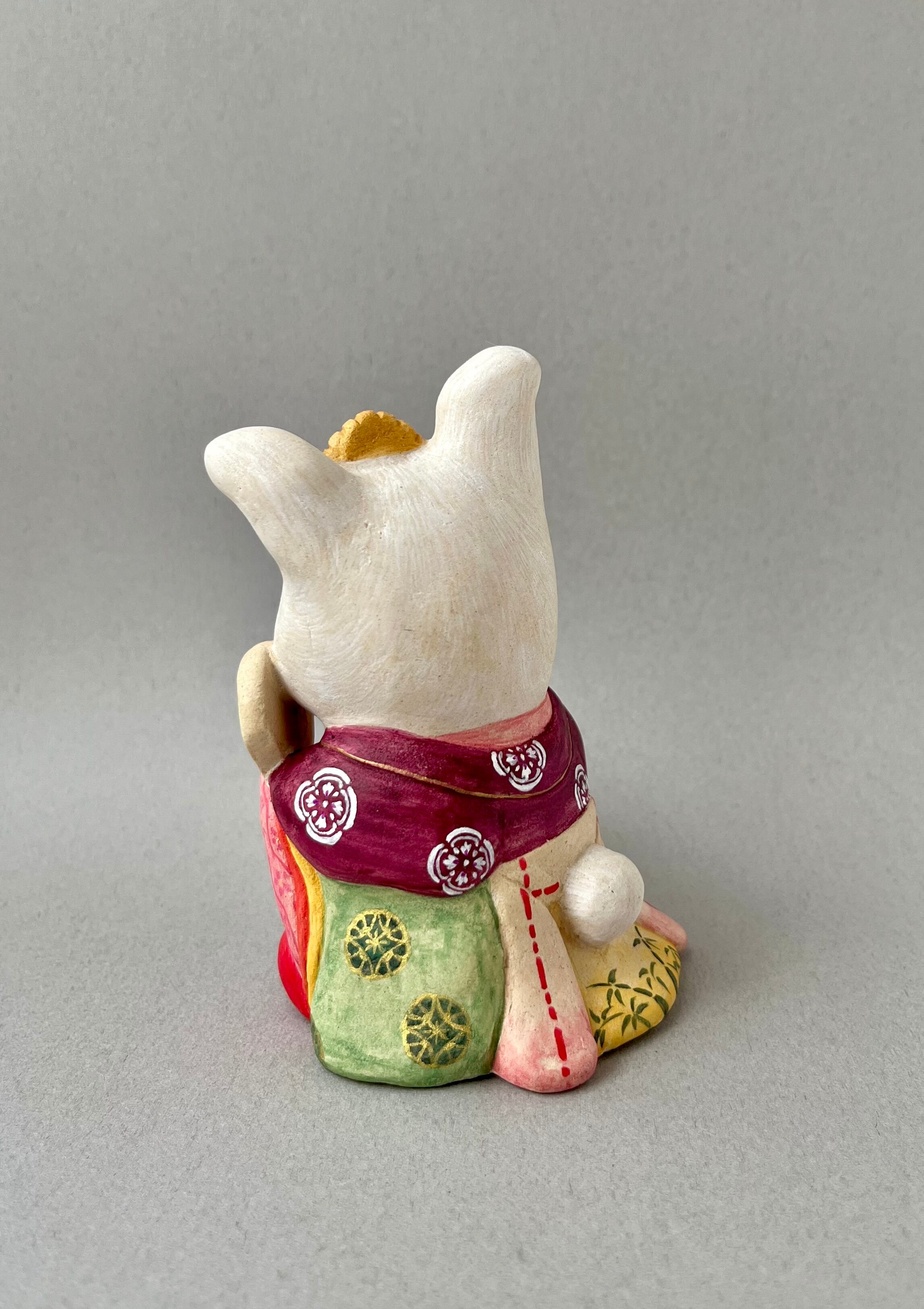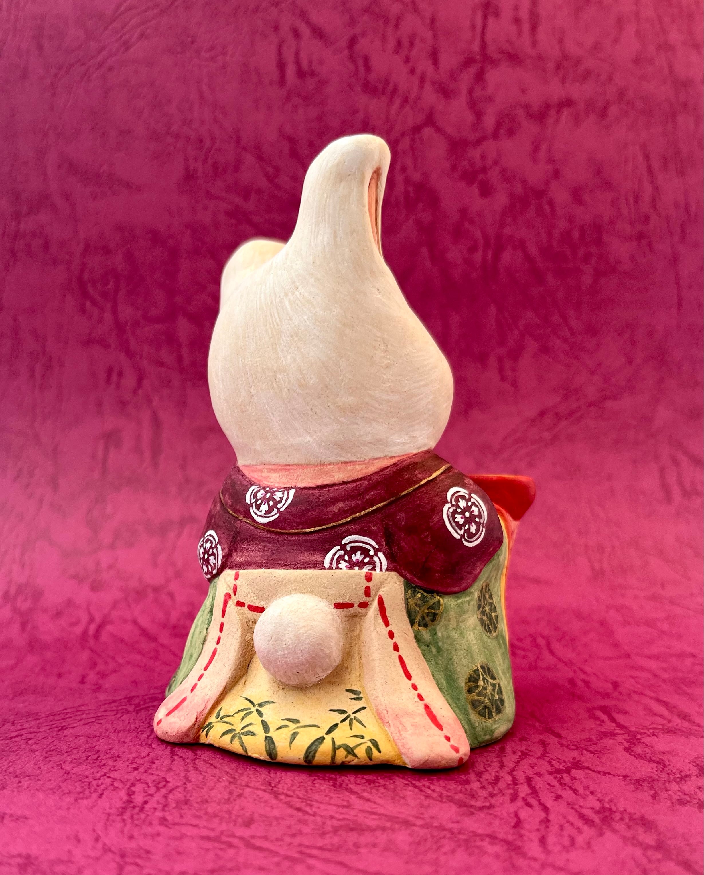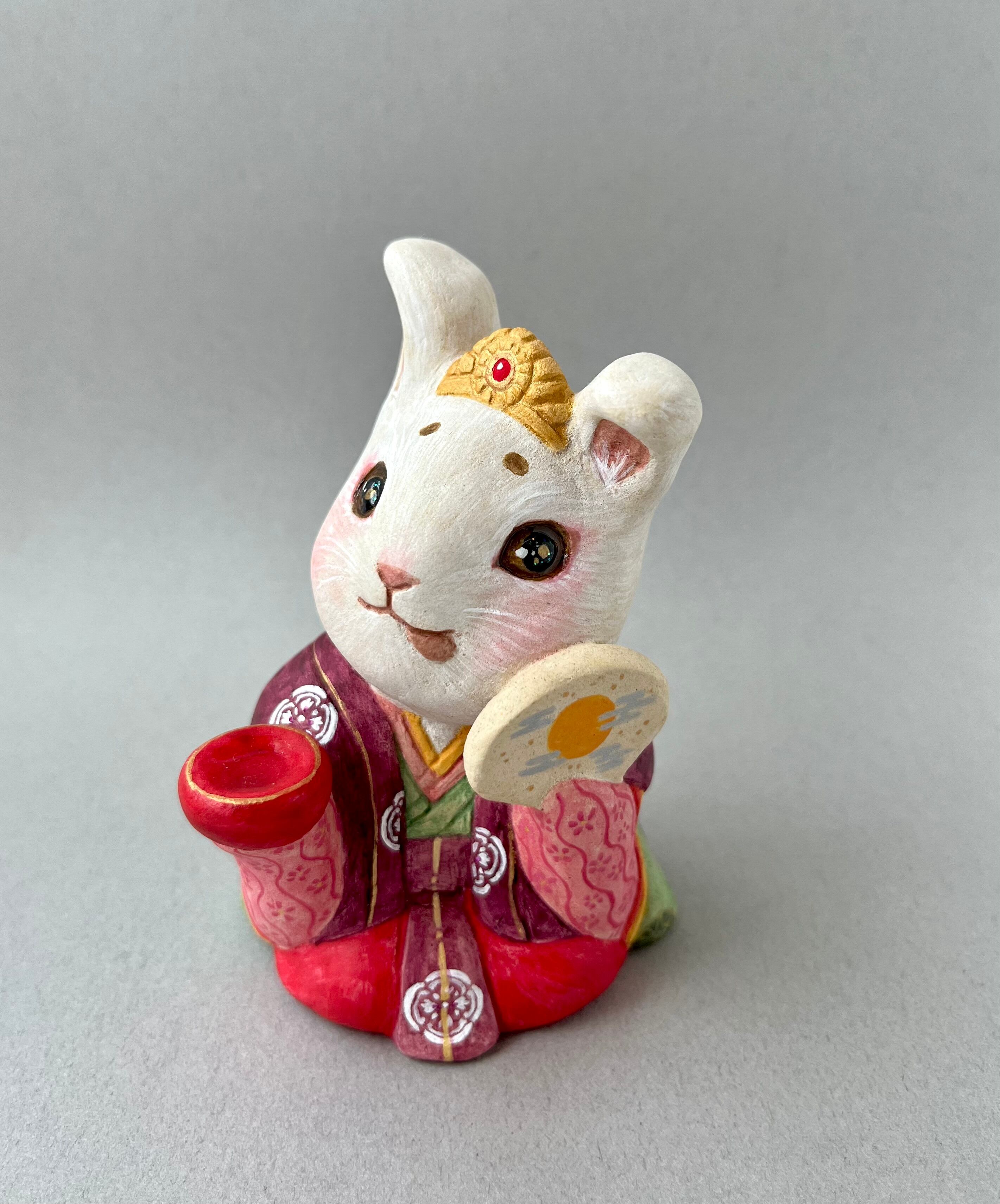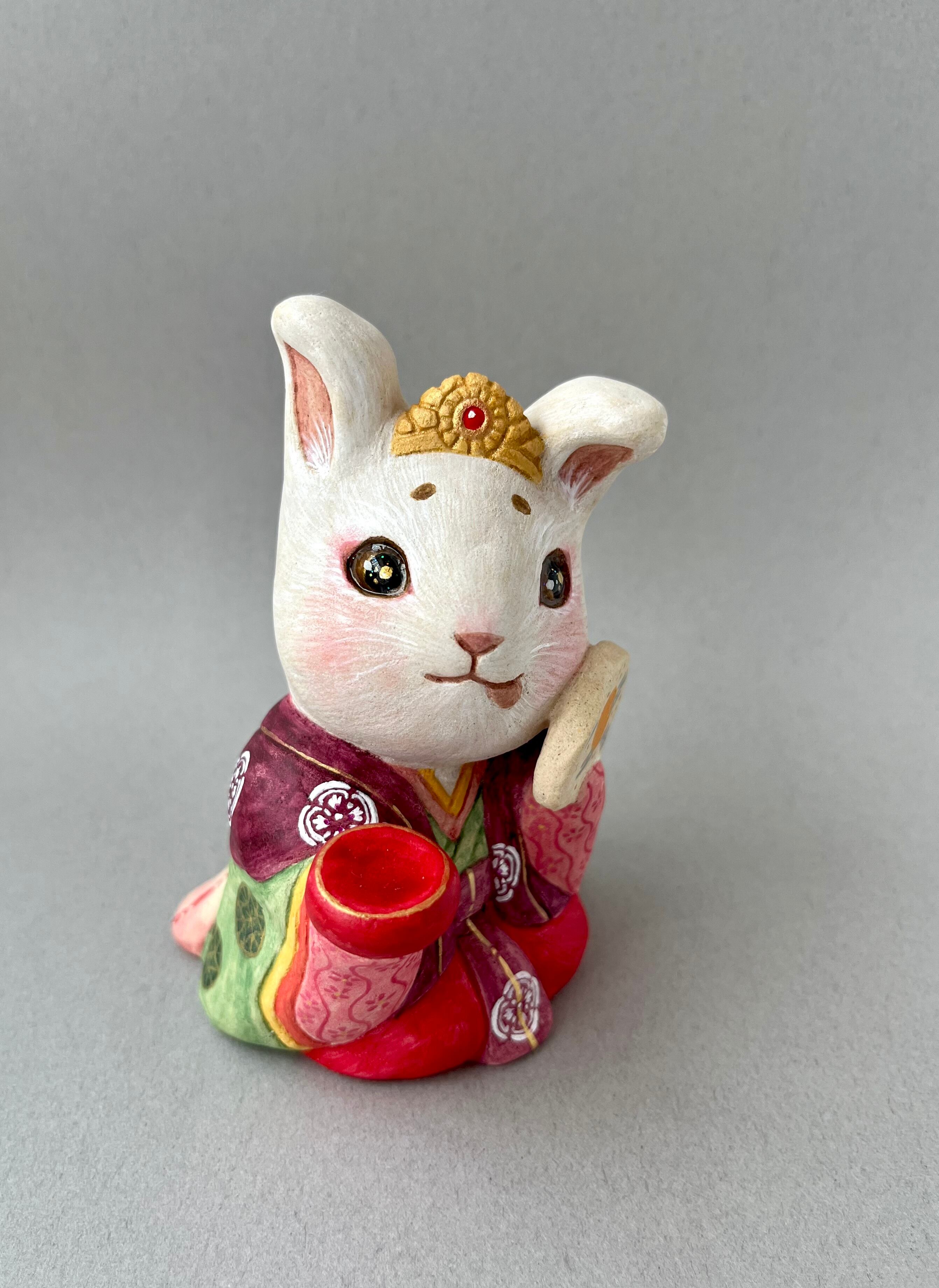 竹取物語でお馴染みの神様。月ではなく故郷の東北に帰ったとか、鬼の一族であるという説もあり、兎は鬼とも言われています。月見酒を楽しんで、酔っ払っている姿にしました。