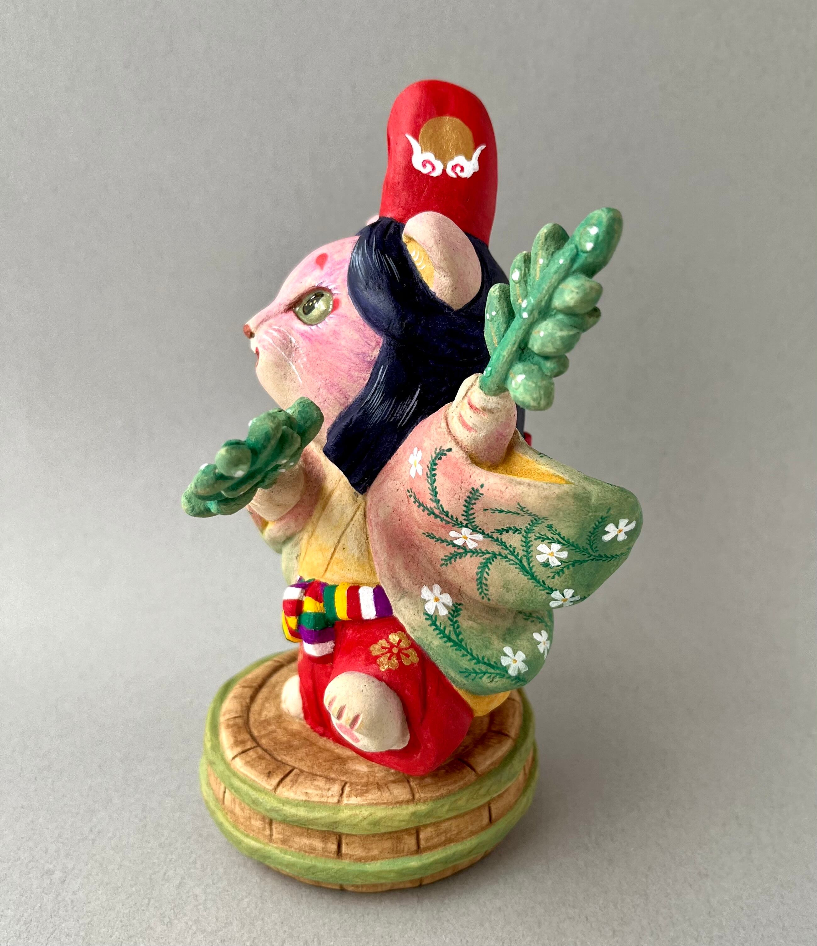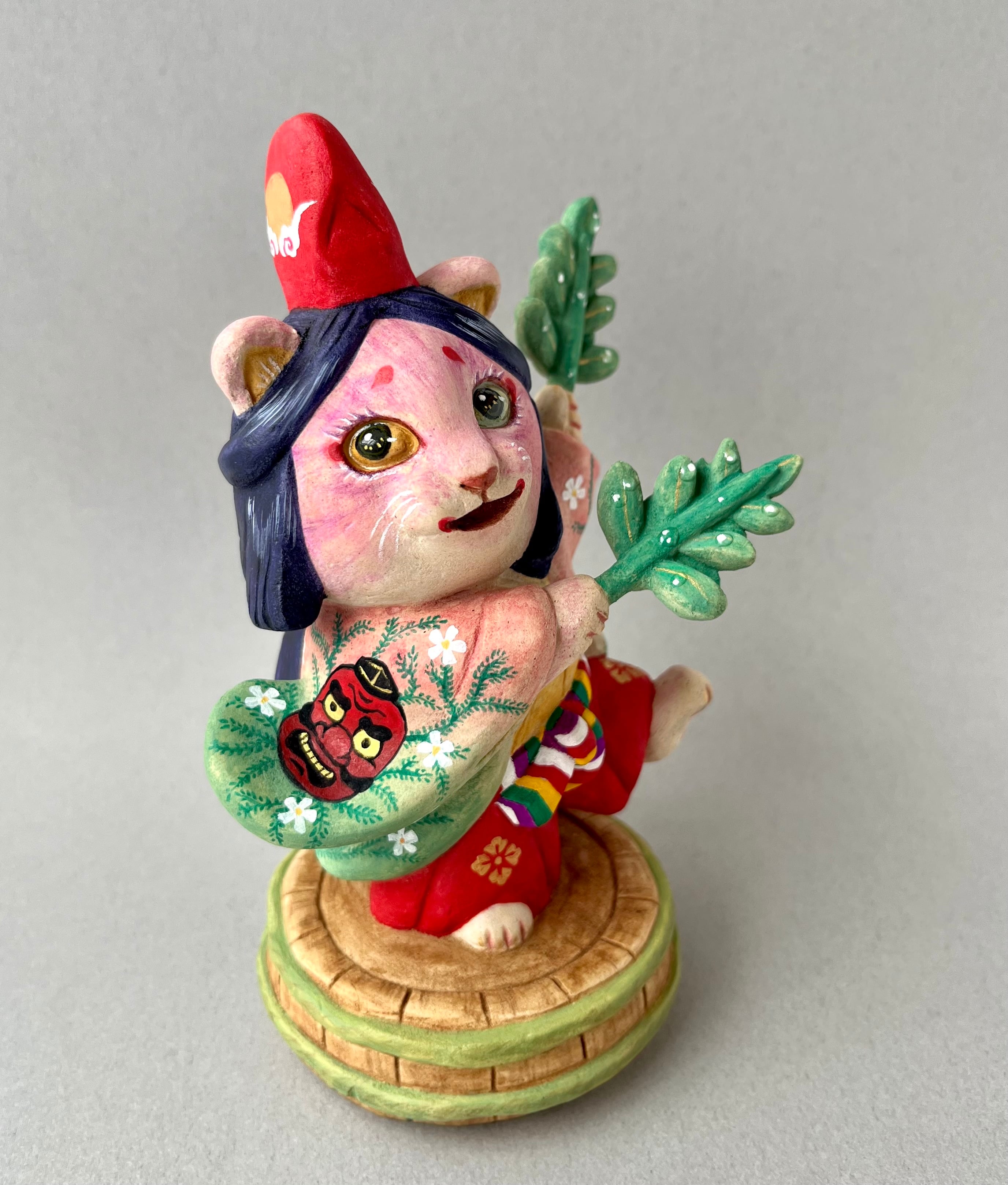 岩戸隠れの際は、桶の上に乗りセクシーな踊りを披露し、神々を笑わせたことで天照大御神を岩戸から出すことに成功しました。踊っている場面をデザインしました。